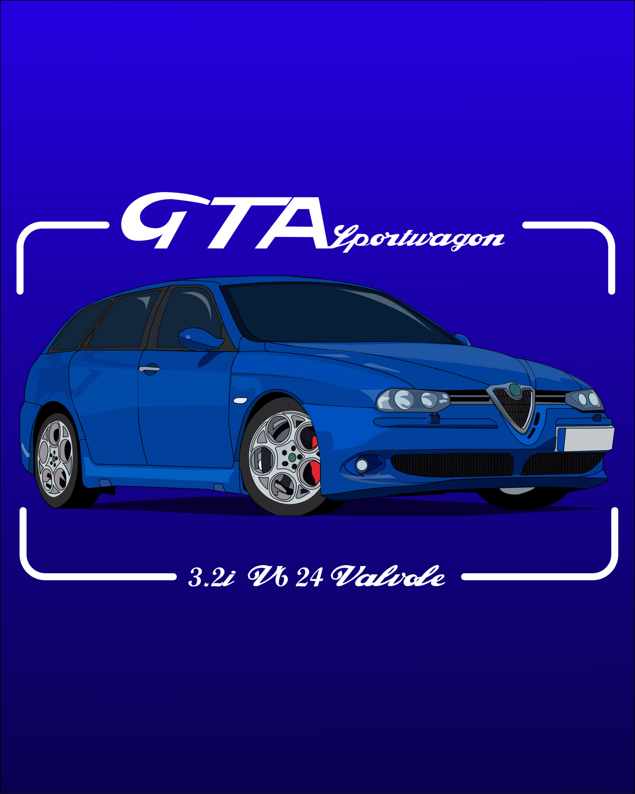 T-shirt a manica corta di una Alfaromeo 156 GTA Sportwagon Blu
